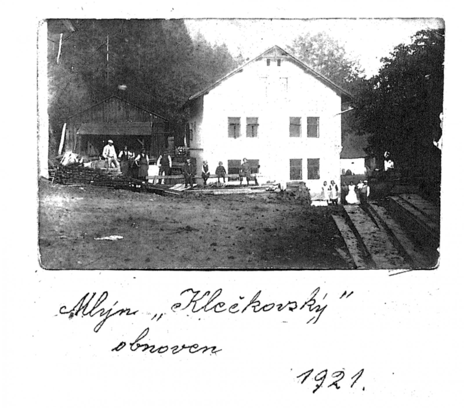 Alois Jirádek v románu Husitský král zmiňuje dřevěný mlýn pod Klečkovem.