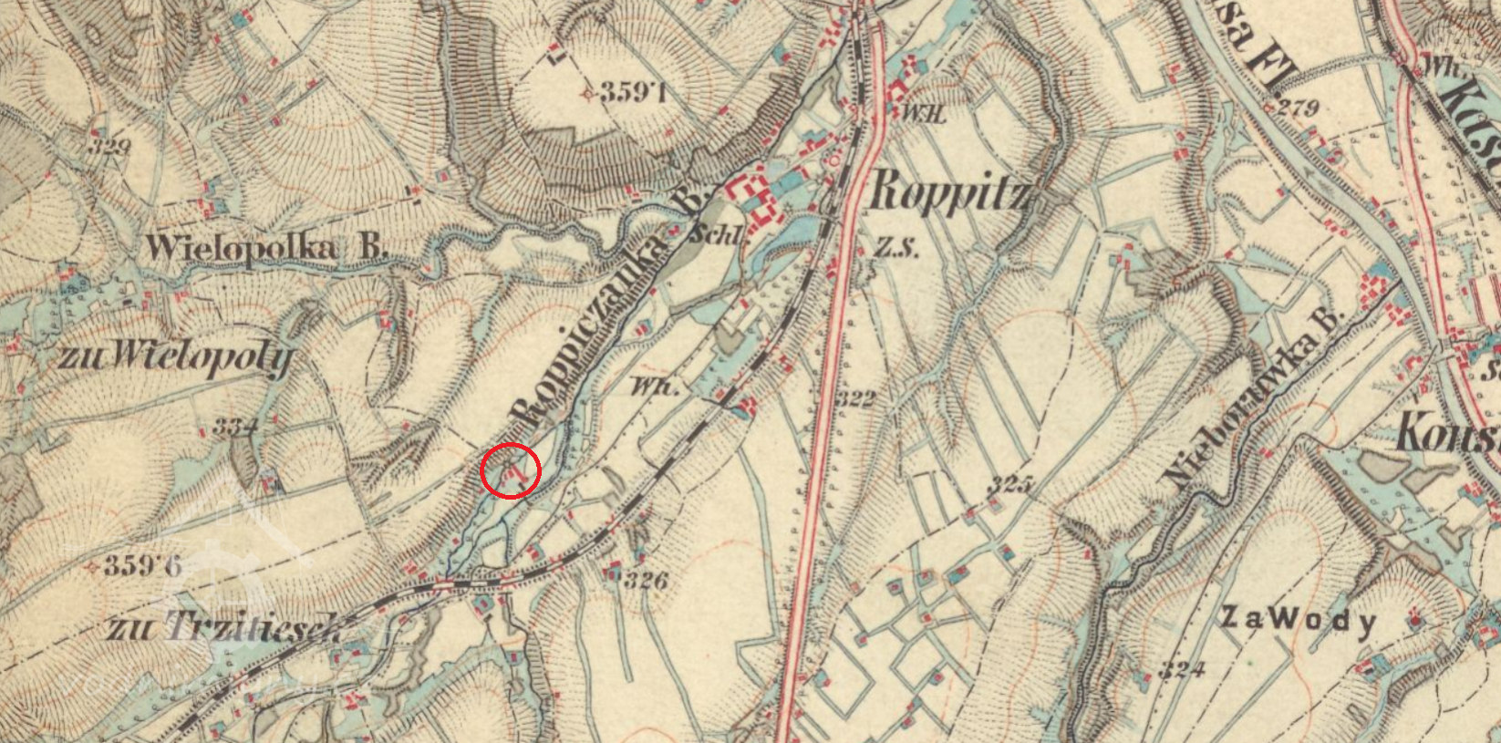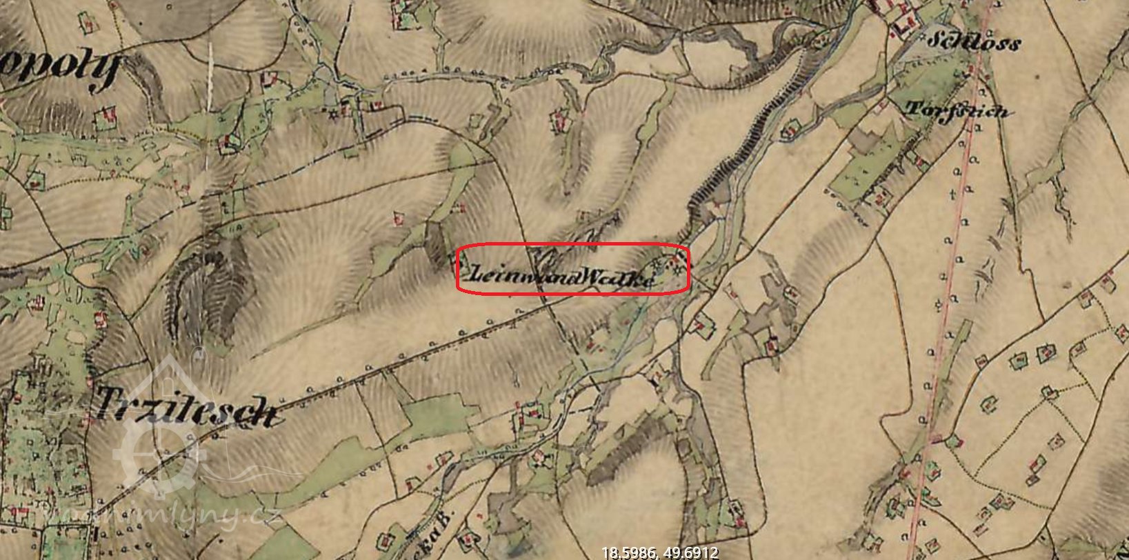 Na mapě II. vojenského mapování označen jako tkalcovská valcha
