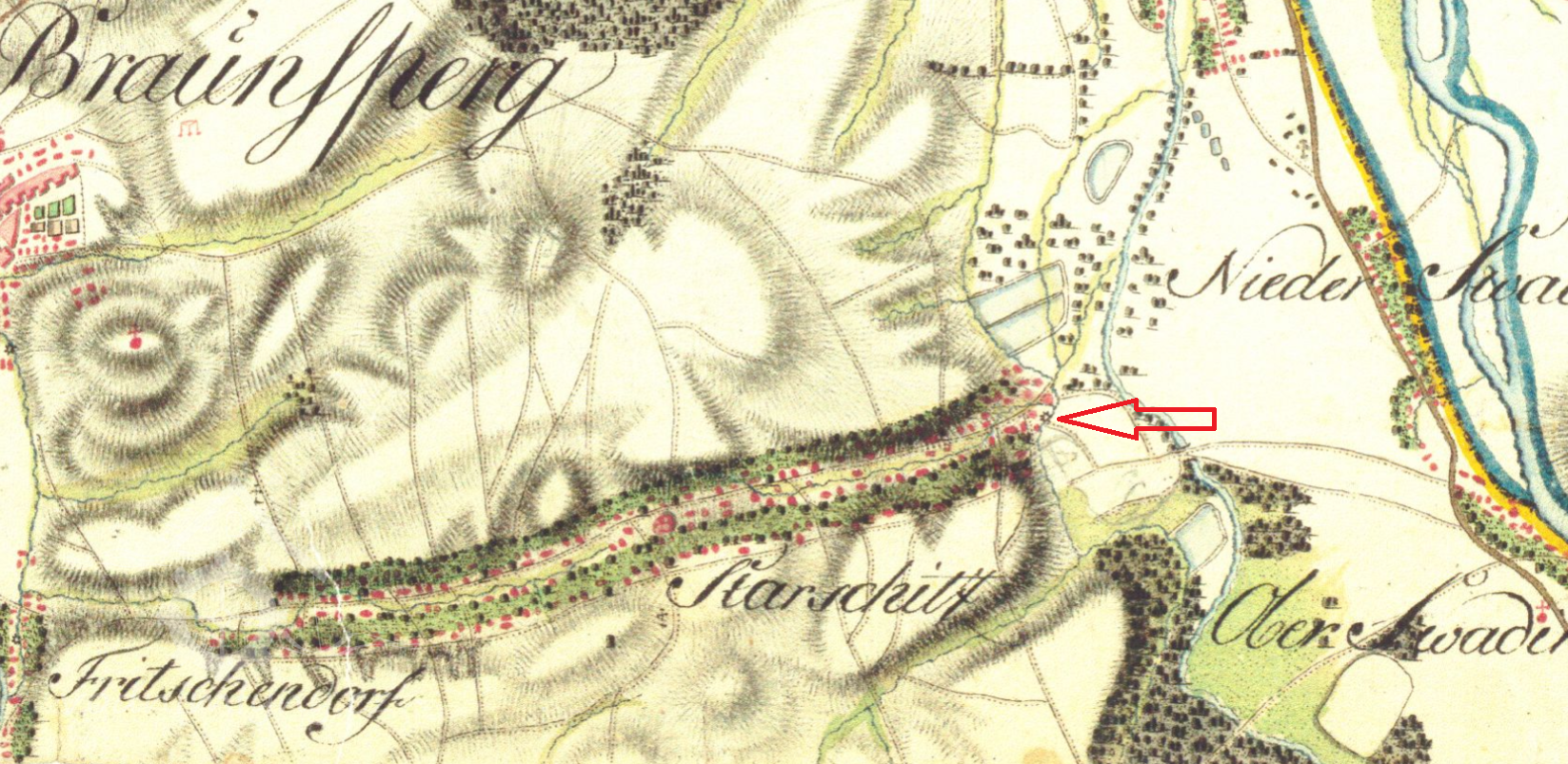 1,9 km sz od kostela Nalezení sv. Kříže ve Staříči