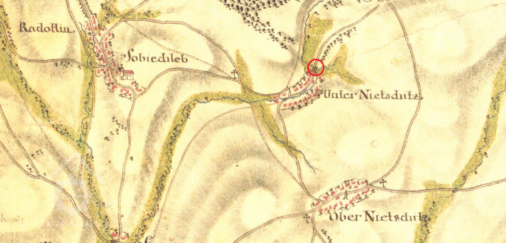 200 m severně od kaple Navštívení P.Marie v Dolních Nětčicích