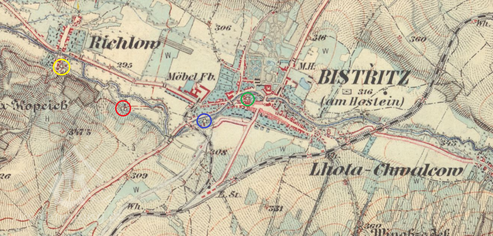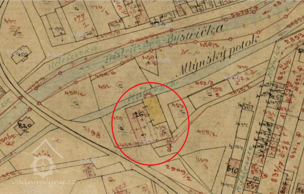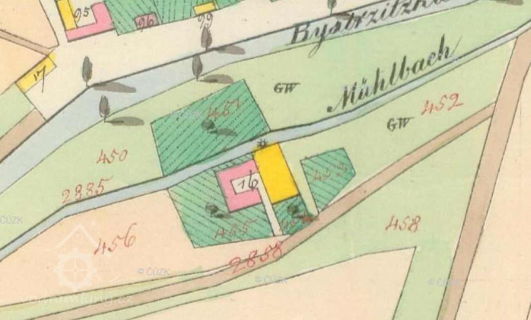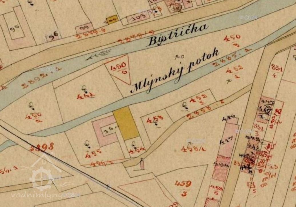 1844 v Bystřici 3 mlýny o dvou chodech a 2 valchy