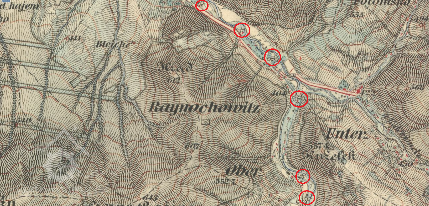 1834 na Juhyni v Rajnochovicích 4 mlýny a 7 pil