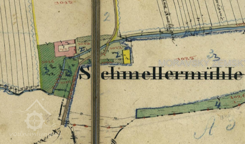 Mlýn na staré katastrální mapě, před r. 1939, © http://geoportal.gepro.cz