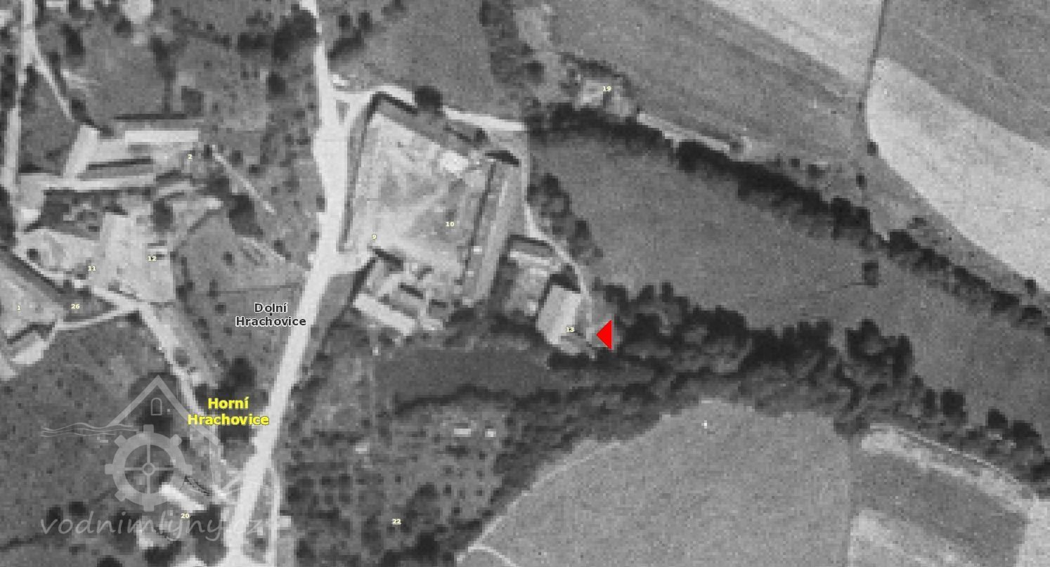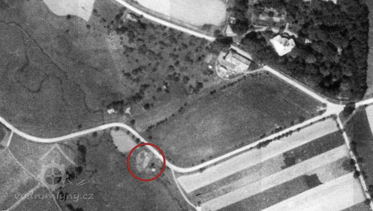 Mlýn na letecké mapě, 1950, © http://kontaminace.cenia.cz/