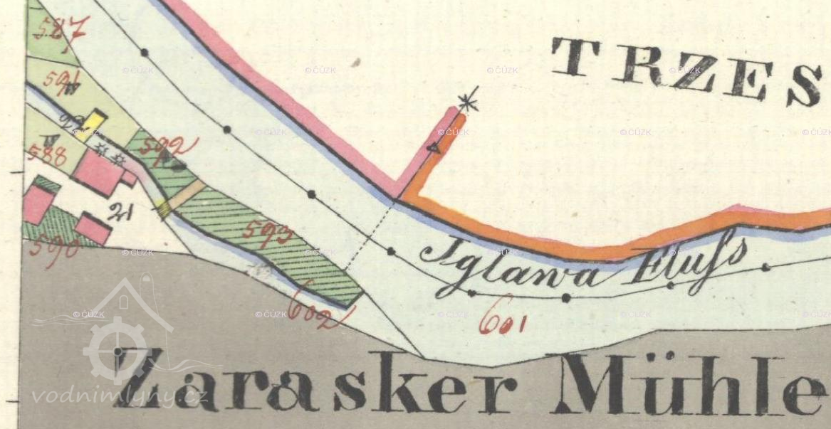Mlýn na staré katastrální mapě, před r. 1939, © http://geoportal.gepro.cz