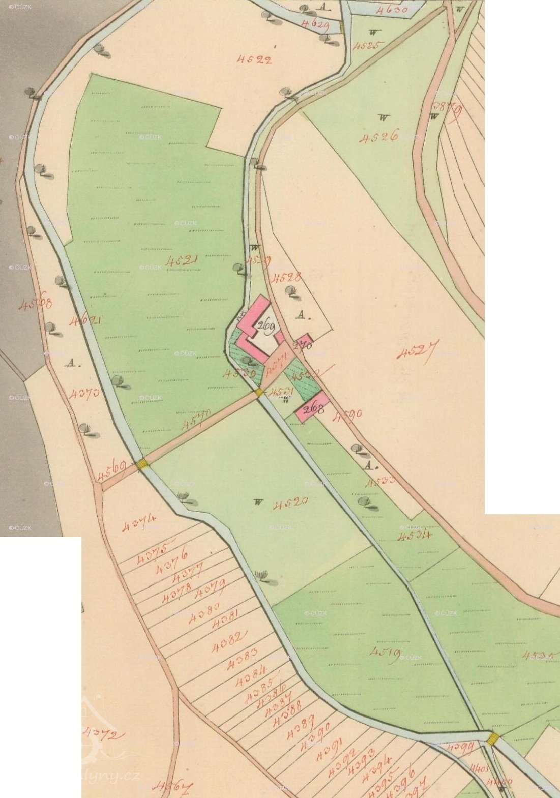 Indikační skica, mlýn, 1827, © www.archivnimapy.cuzk.cz