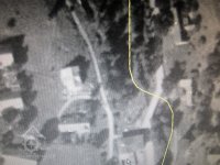 Letecké mapování z 50. let překryté Pozemkovým katastrem - pila označena pilovým listem, 1952, © viz http://kontaminace.cenia.cz/