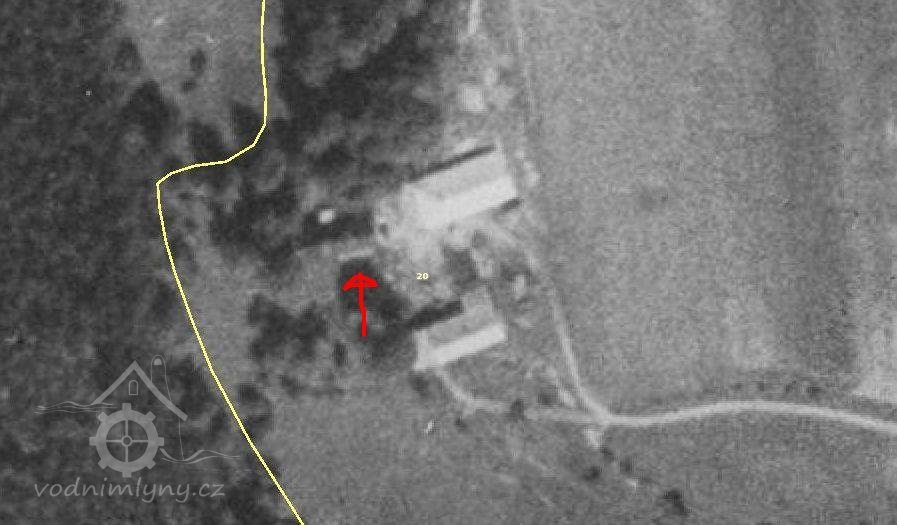 Kohoutův mlýn čp.10 ještě viditelný, 1953, © kontaminace.cenia.cz