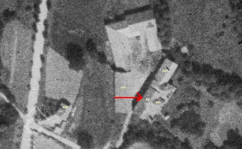 letecké mapování z 50. let a mapa katastru nemovitostí, 1953, © viz http://kontaminace.cenia.cz