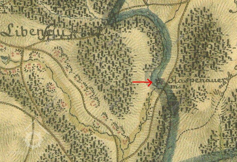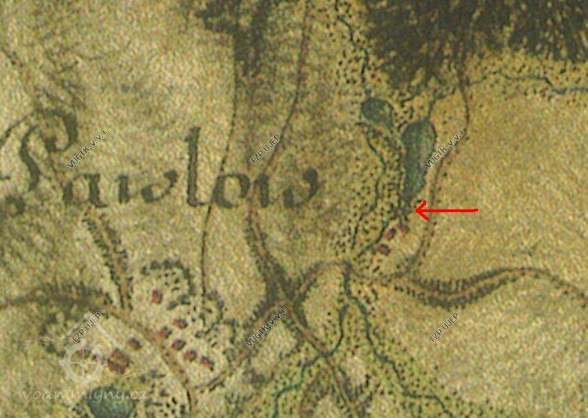 Obere Mühle-Horní mlýn v Pavlově, 1764-68, © I.vojenské mapování, výřez, oldmaps.geolab.cz