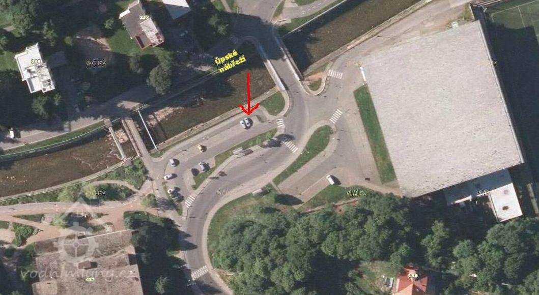 Zde stával Dolní, Špitálský mlýn. Dnes parkoviště mezi Plaveckým bazénem a Zimním stadionem, 2010, © kontaminace.cenia.cz
