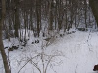 Náhon začínal rybníkem, který má dnes protrženou hráz. Následně vedl náhon, který ústil do akumulační nádržky a následně šla voda vantrokem na vodní kolo na horní vodu.
