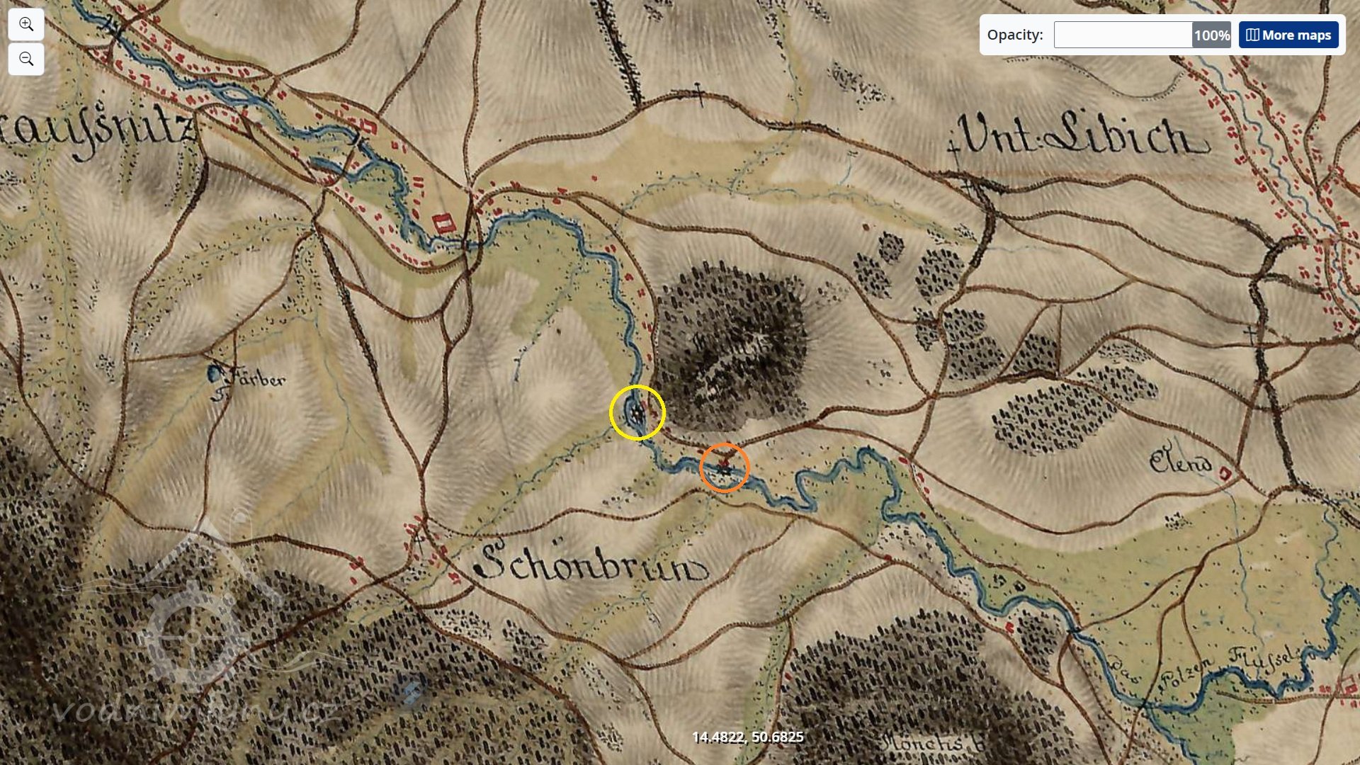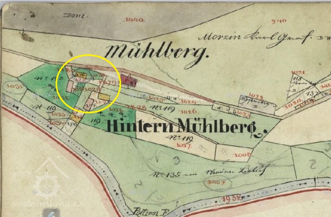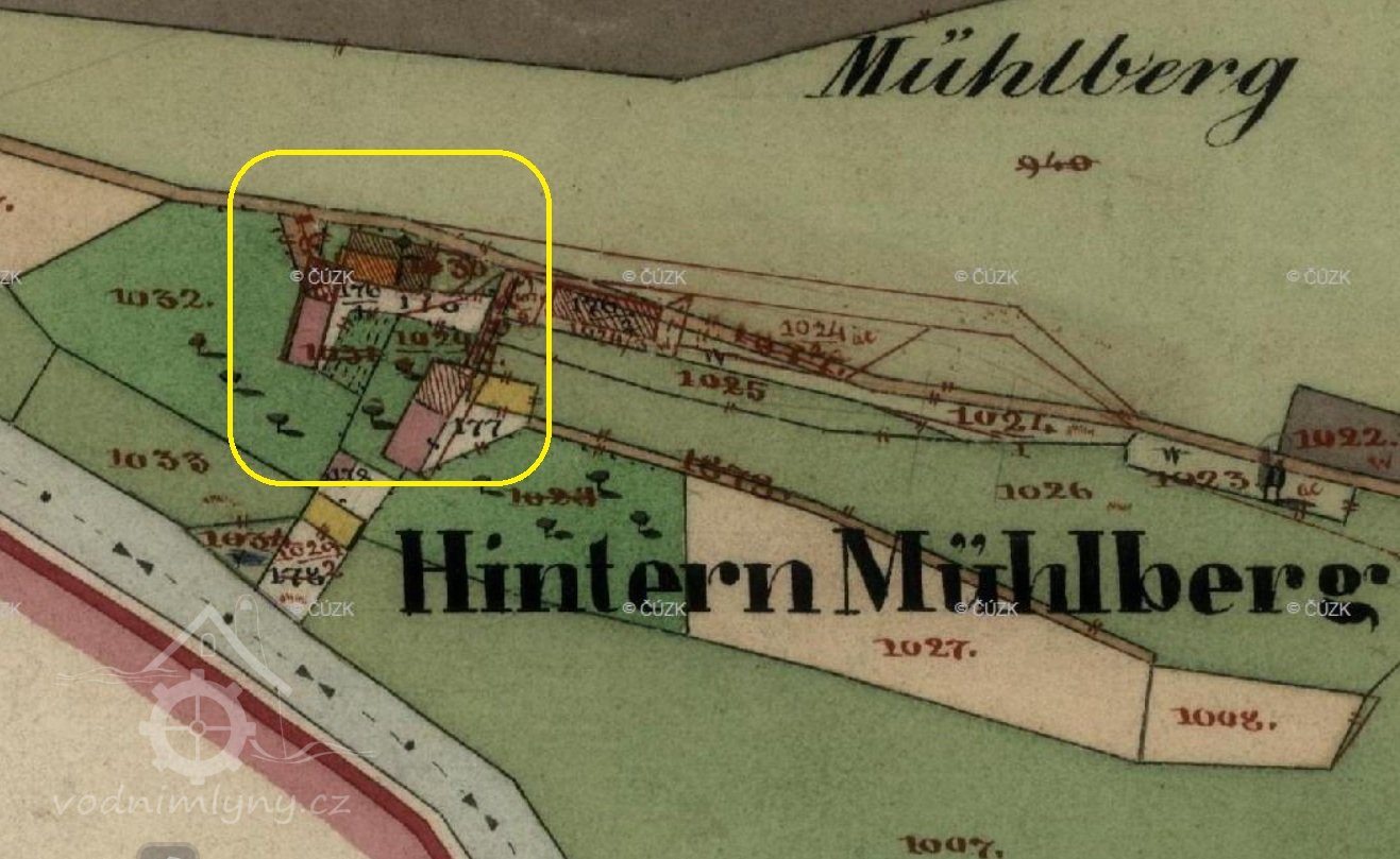 Mlýn vyznačený na mapě I. vojenského mapování, na císařském otisku patrný ještě zbytek náhonu. Budova ale dosud zachována.