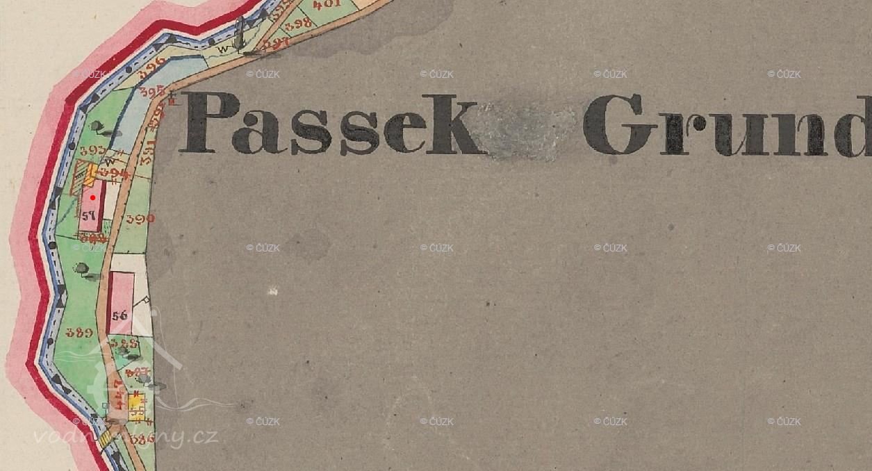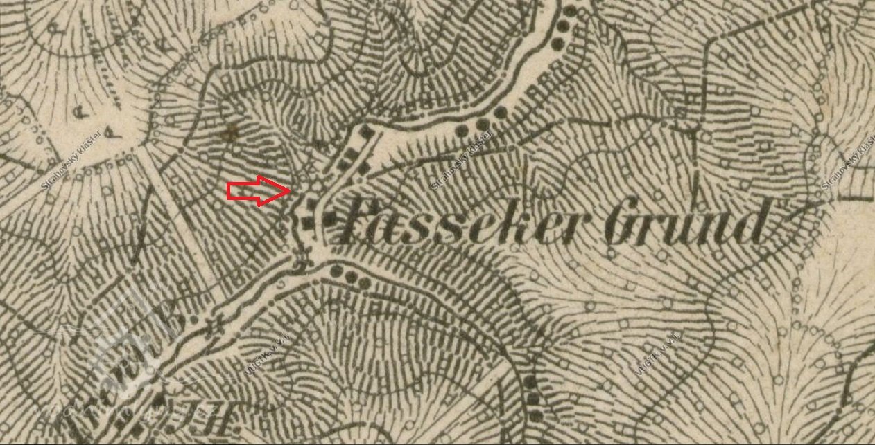 Mlýn a pilu zde nechává vrchnost postavit kolem roku 1800, kdy se Passekgrund, jak se místu německy říkalo, začíná objevovat v listinách. Kolem mlýna postupně vznikaly i další usedlosti.