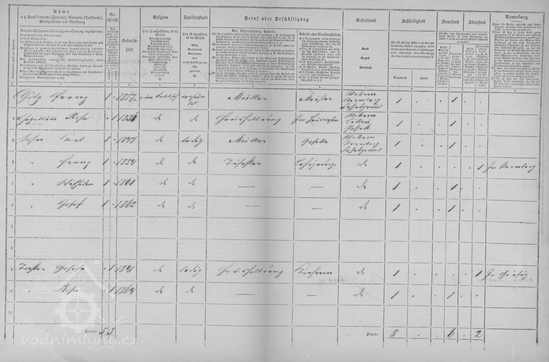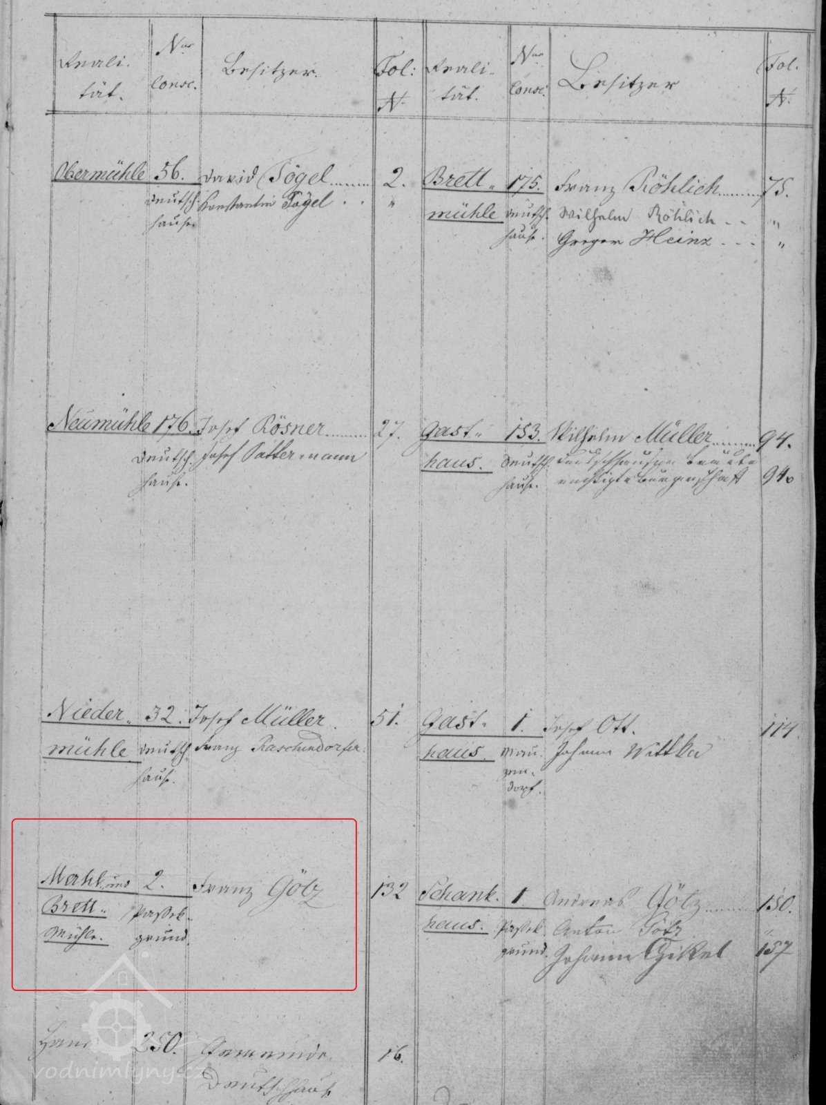 V roce 1869 mlýn vlastní mlynář Franz Götz nar. 1817.
