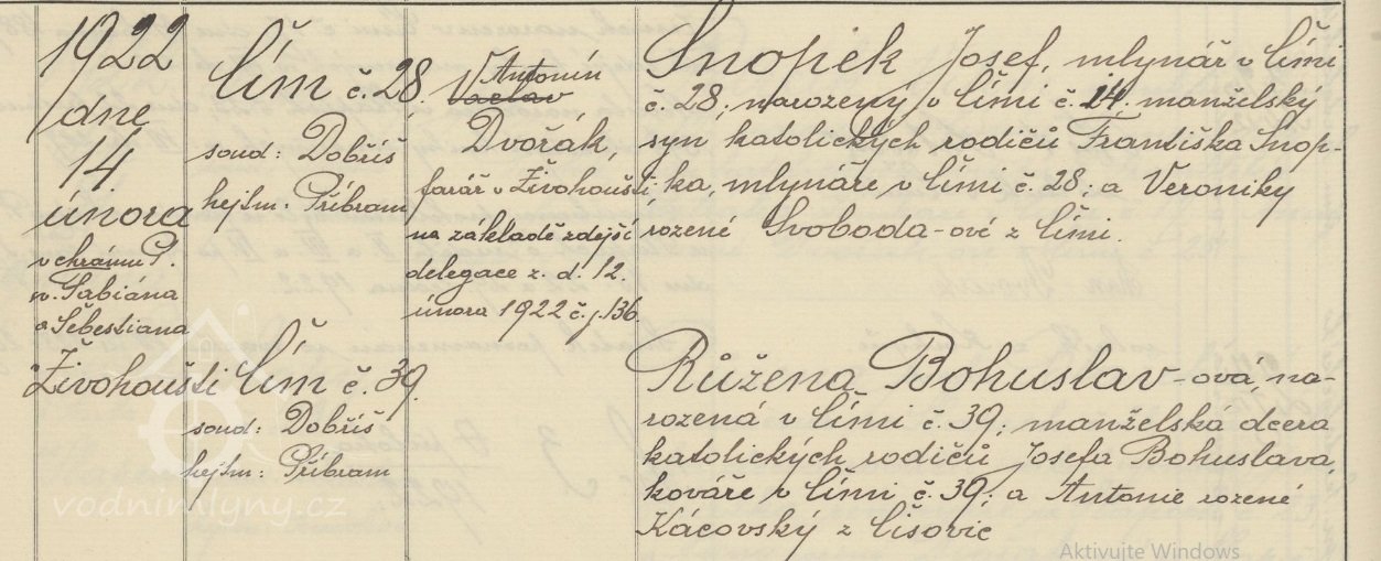 V r. 1930 je psán majitel mlýna Josef Snopek (RR).