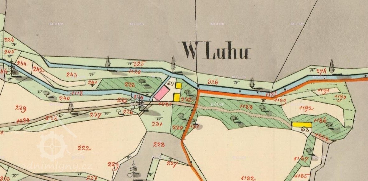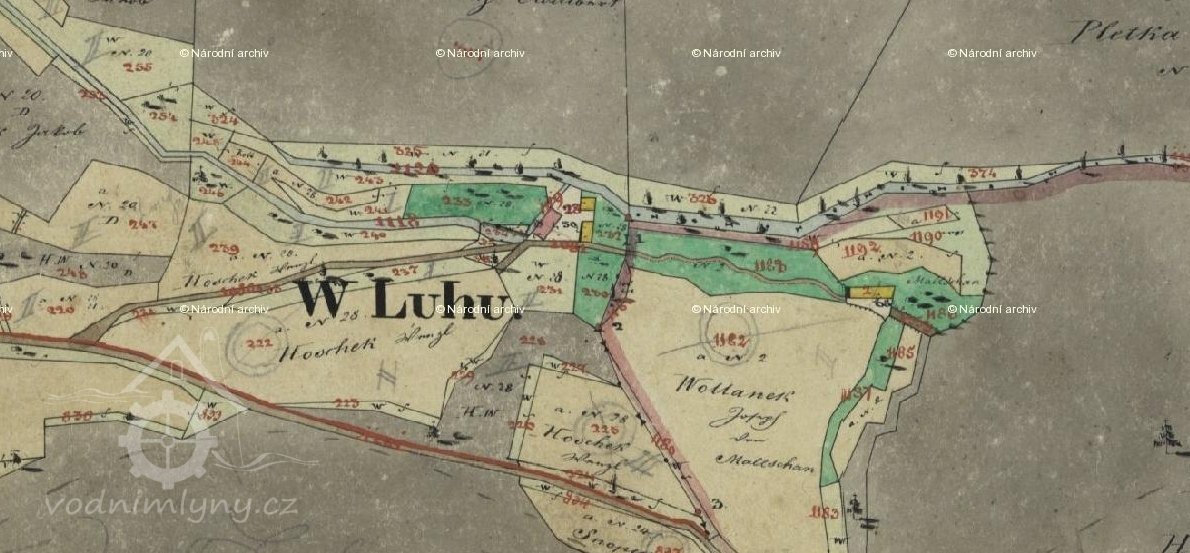 PopisV r. 1930 zde bylo 1 kolo na svrchní vodu, průtok 0,08 m3/s, spád 5,8 m, výkon 4 k.