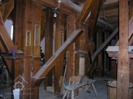 V interiéru mlýna částečně zachovano mlecí zařízení - foto interiéru: