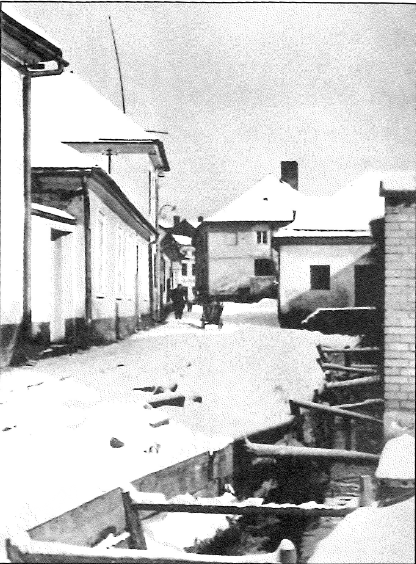 Vodní náhon od mlýna v Malé ulici kryt betonovými kvádry, protéká k mlýnu v Novosadech.