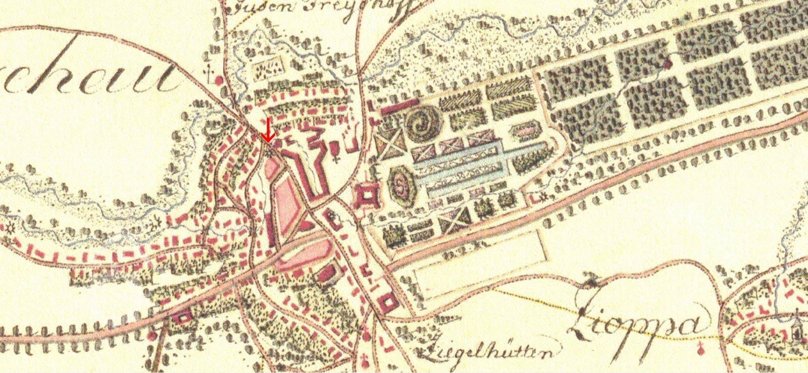 Na struze vedoucí od zámku (v 70. letech 20. stol. zasypána).