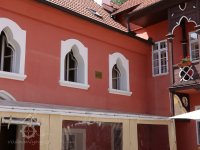 Západní křídlo bohatě pseudogoticky zdobené. Jeho průčelí je členěno dvěma okenními osami /nepravidelná okna – trojlist, čtyřlist, obdélníkové/. Nad rovně zaklenutým vchodem hrotitá římsa s trojlistem vybíhající ze sloupků. Ve vrcholu štítu a po stranách jehlance zdobené fiálami. Boční strany budovy vystupují ze střechy v podobě balustrády s náplněmi, okénky a fiálami, v zadní části věžovitý přístavek prvního patra se zdvojenými okny, ozdobnou římsou a ozubenou zdí kolem jehlancové střechy, z jejích rohů vyčnívají vysoké jehlancové fiály. Střecha sedlová, tašková. Obě křídla spojena zdí s bránou segmentově ukončenou.