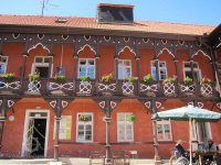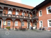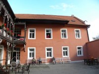 Jednopatrová stavba obdélného půdorysu se dvěma bočními křídly. Průčelí je členěno osmi okenními osami a pavlačí dřevěnou /bohatě vyřezávaná - trojlisty/. Průčelí východního křídla členěno pěti okenními osami, jednoduchá obdélníková okna.