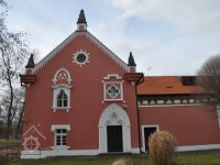 Červený mlýn - stojí na konci hlavní aleje v sev. č. parku - dvoukřídlá budova, jednopatrová, s půdorysem tvaru L, v gotizujícím slohu. Ve věžovitém nástavci v záp. rohu budovy byl neogoticky zařízený salonek se štukovou výzdobou. Po r. 1840 budova rozšířena na podkovovitý půdorys. Na nádvorním průčelí byla zřízena pavlač v gotizujícím slohu a nádvoří bylo uzavřeno ohradní zdí s branou, /původní stavba se nedochovala - mlýn prošel mnoha stav. úpravami - dnes domov důchodců/.