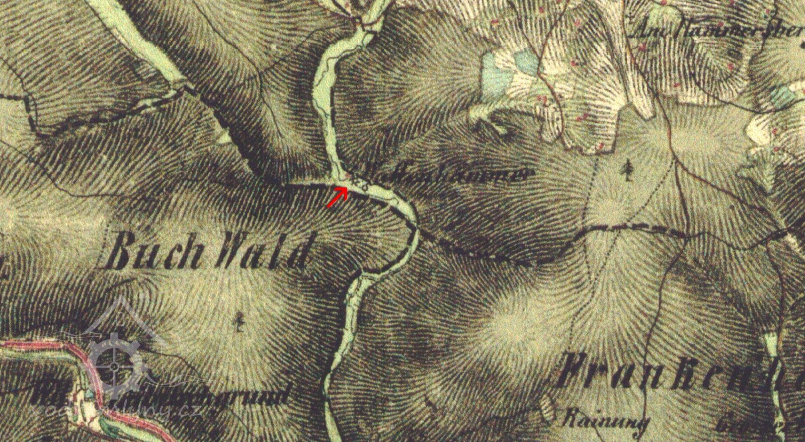 Mělo jít o poslední krušnohorský mlýn s dochovanou a funkční mlecí soustavou. Když jsem ho před 30ti lety fotil, otec a synové tehdy po GO objektu měnili uhnilé mlýnské kolo nahradit replikou. Už tehdy sdělili, že mlýn byl 2x vykraden s tím, že podruhé tu lupiči nechali lístek s tím, napotřetí bude vypálen. K tomu došlo na Silvestra 2003. Dnes jsou v místě zarostlé zbytky základů.