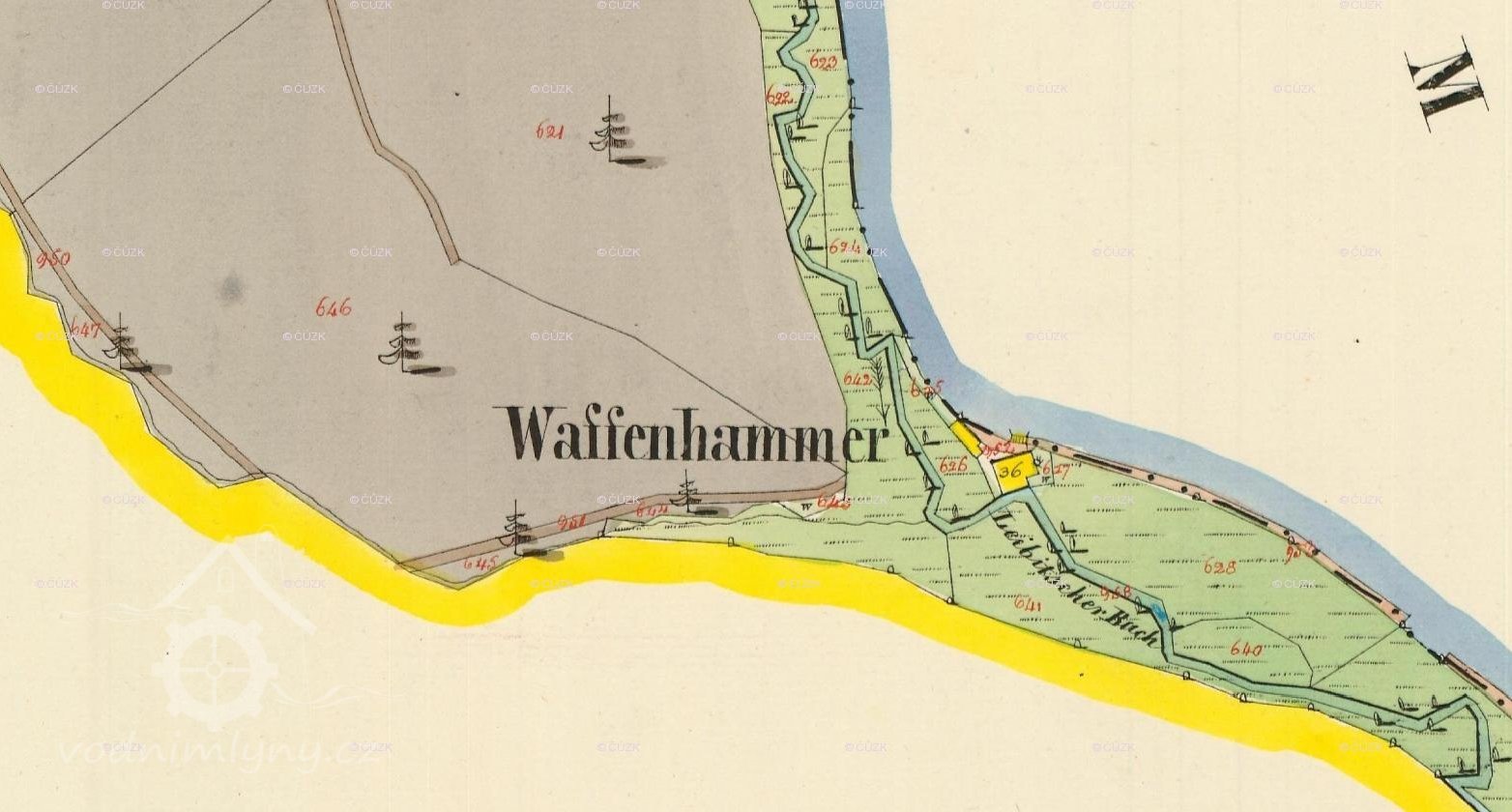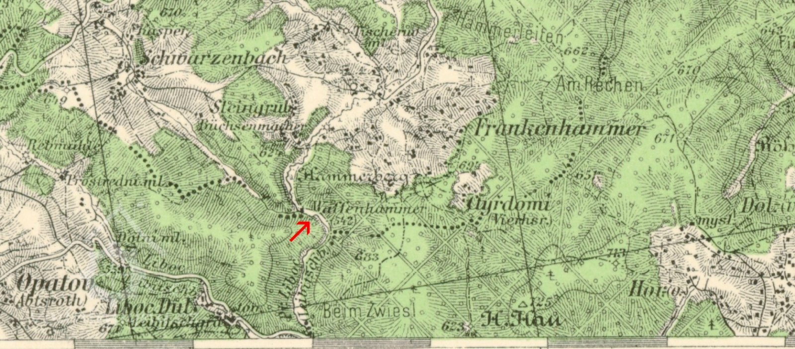 V roce 1930 vlastnil mlýn Josef Sandner z obce Schwarzenbach a potok se nazýval Mühlbach.