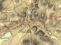 Cejch zasasen 4.7.1890. Vodní cejch i fixní bod byly vytesány na skalních balvanech při břehu rybníka nacházejících se poblíž vypouštěcího stavidla.