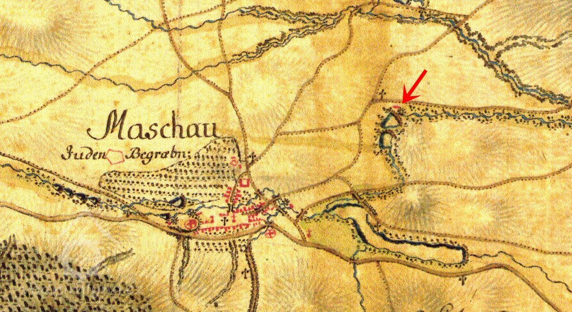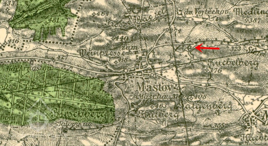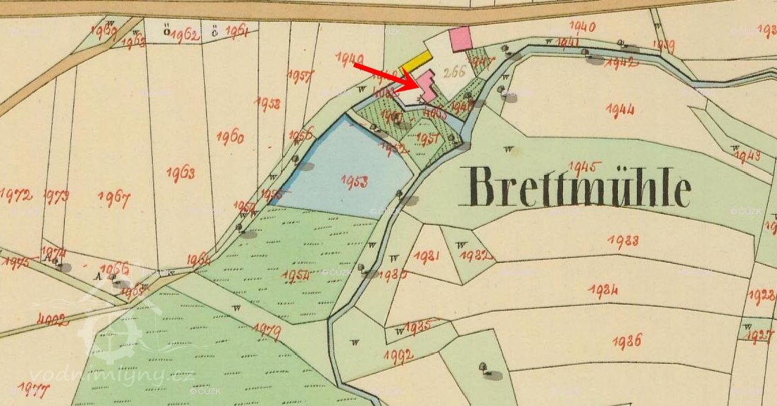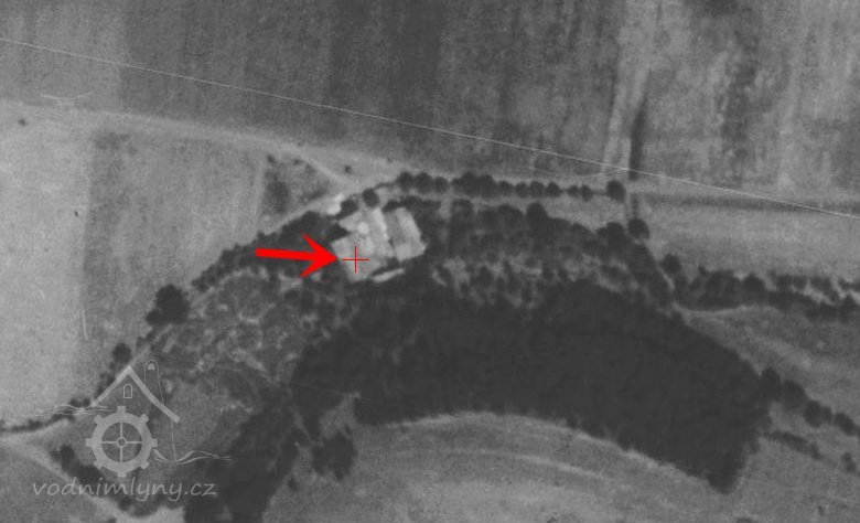 Zaniklý mlýn na samotě nedaleko obce Mašťov stál ještě v roce 1952.