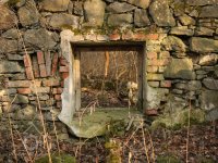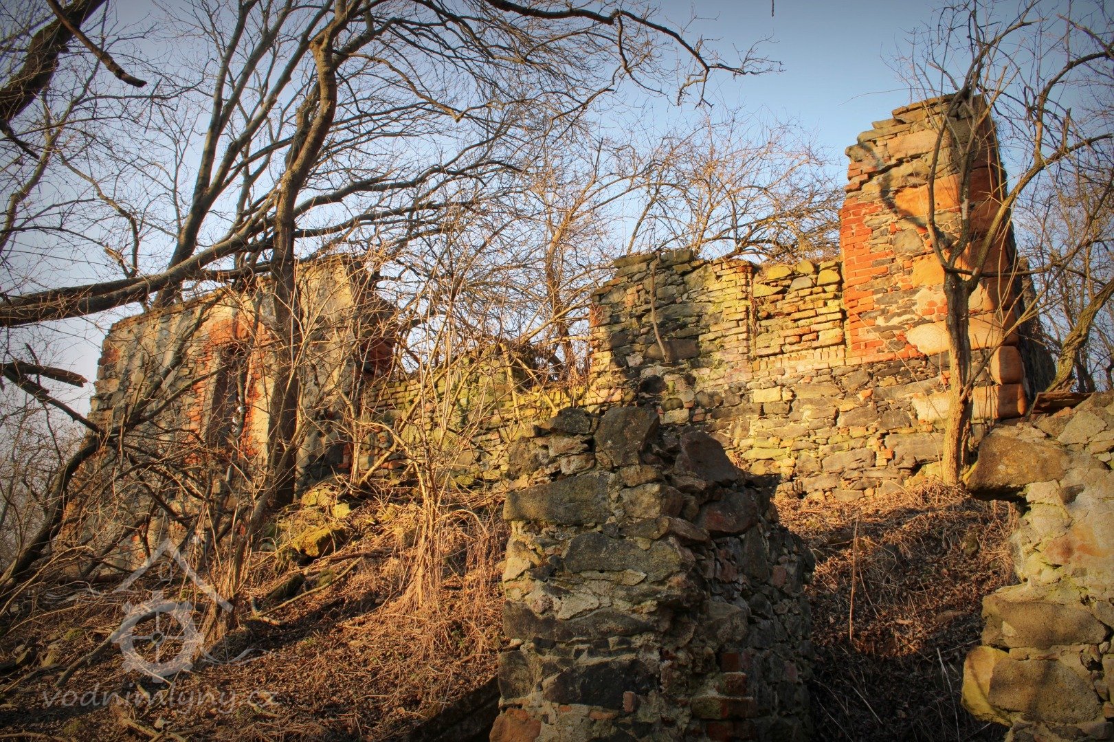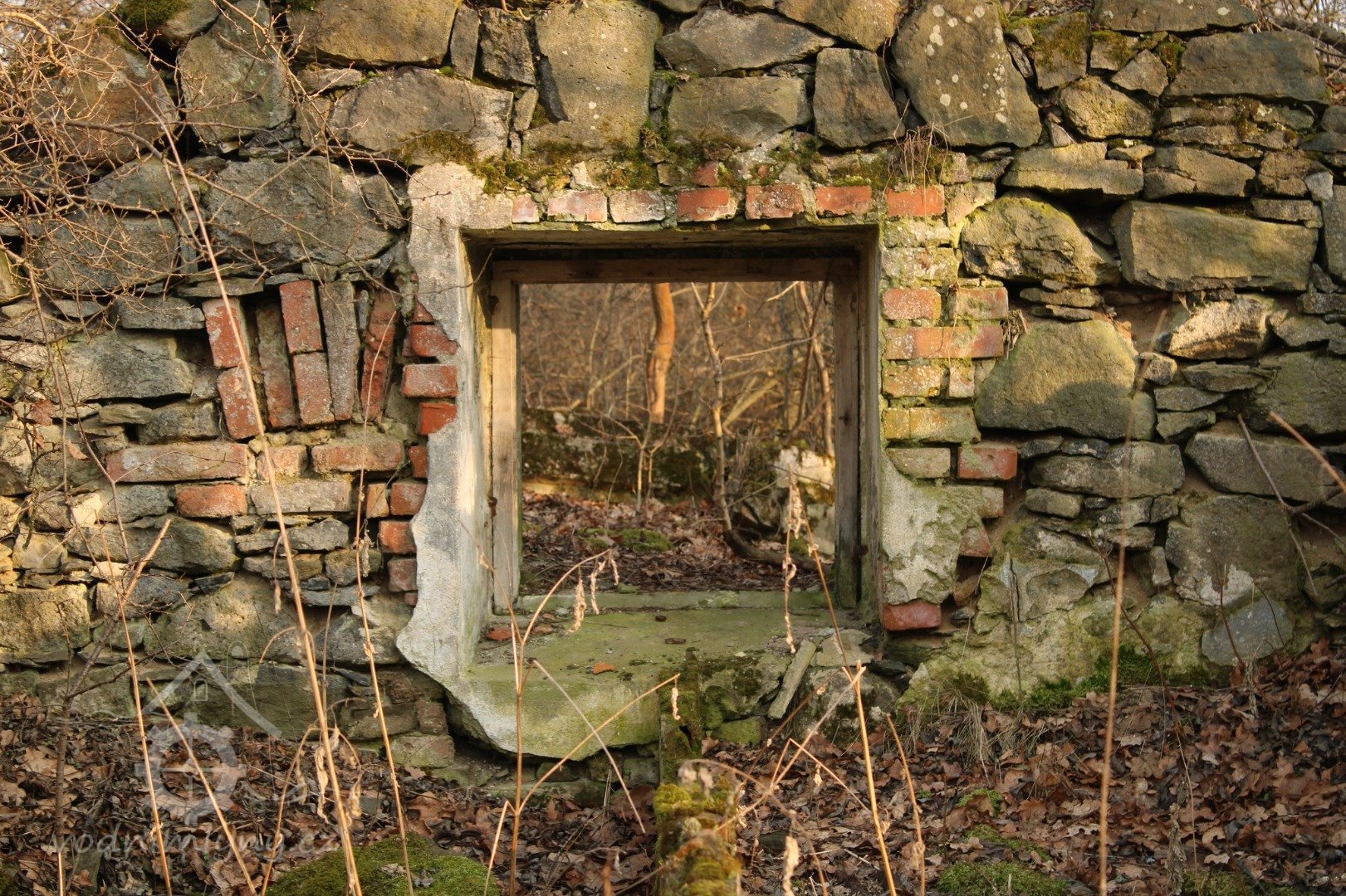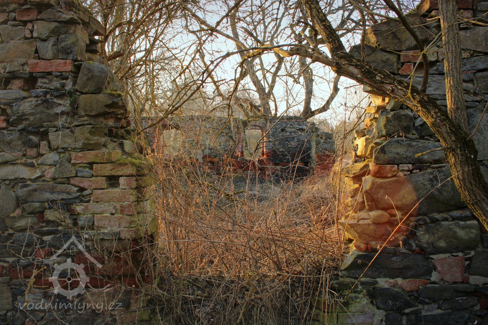 Ruina bývalého mlýna na samotě nedaleko Mašťova, blízko hranice Vojenského výcvikového prostoru Hradiště.