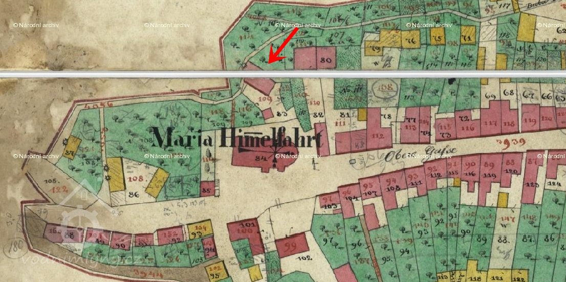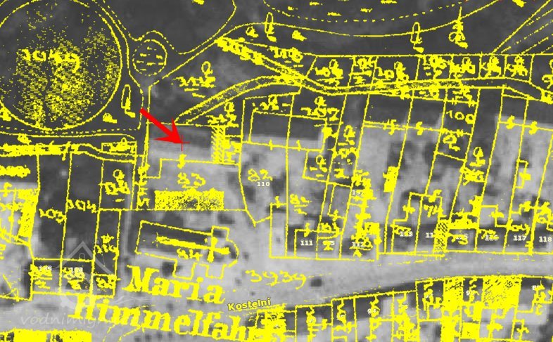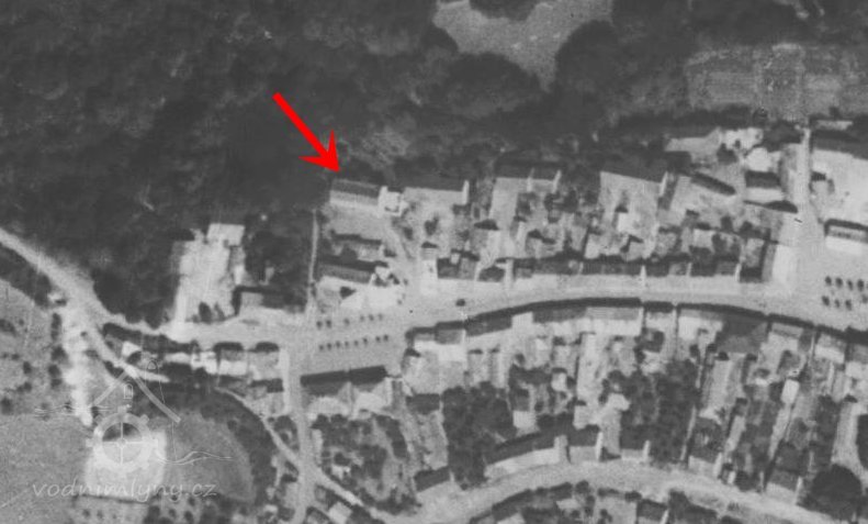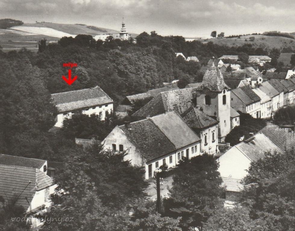 Mlýn se nacházel asi 30 m severně od kostela Nanebevzetí Panny Marie.