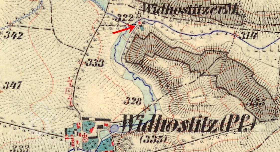 K roku 1756 se ve Vidhosticích uvádí rybník, chmelnice, mlýn.