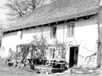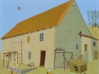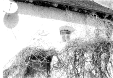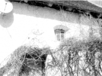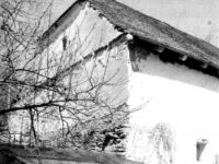 a na štítové zdi zašlý rumělkou psaný nápis,