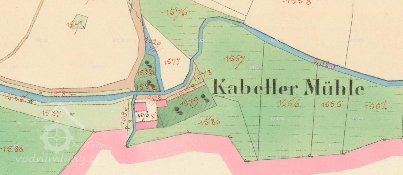 „(…) Nalezl jsem zkazku, dle níž na statku číslo domu 5, číslo domu 43 (mlýn) a na mlýně zvaném "Kabelík" (mlýn při hořejším cípu rybníka Velkorojického) byl stejný malovaný znak a dle níž tyto tři budovy byly náležely jednomu majiteli. Jaký tento znak byl, nemohl jsem se dopátrati."
