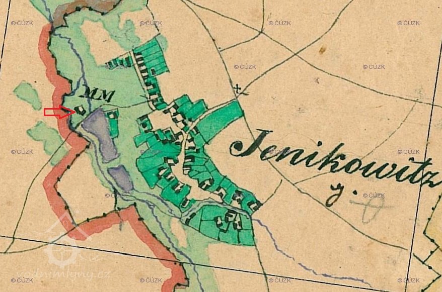 Mlýn je poprvé vyobrazen na mapách stabilního katastru a II. vojenského mapování. (MH)