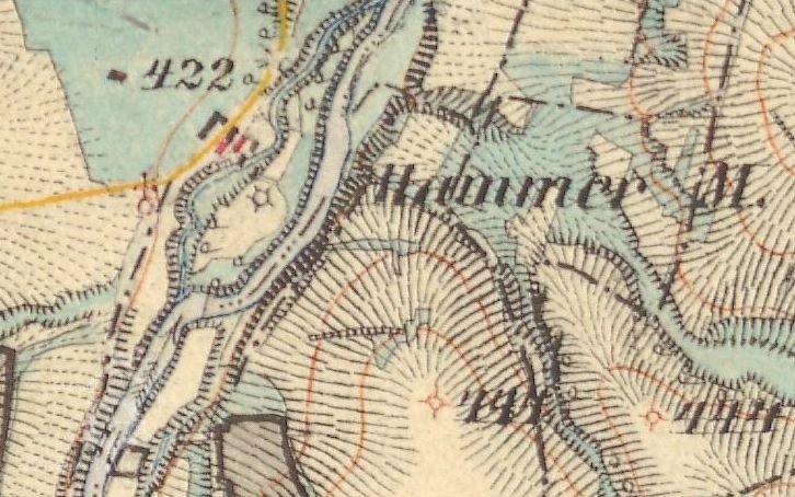V 16. století zde byl krátce provozován hamr, od kterého vznikl název mlýna Hamr.