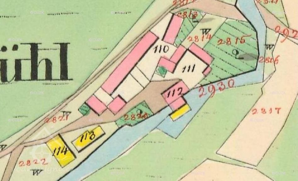 1930 - Jan Lisner, mlýn a pila, 2 kola na spodní vodu, průtok 650 l/s a 650 l/s, spád vody 2x 2,31m.