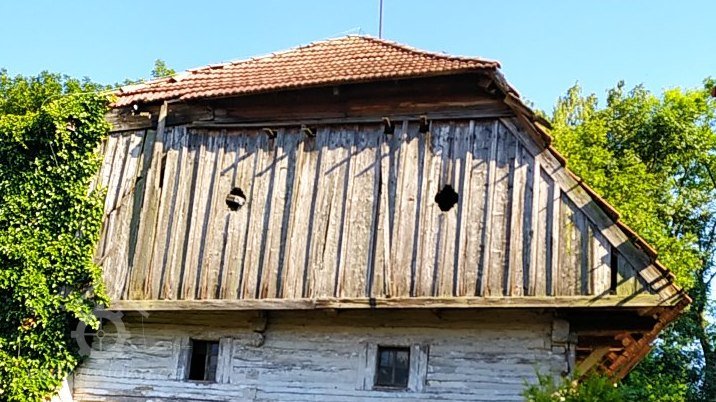 Dřevěná stavba s malými okny,.