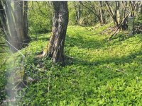 Neexistuje. Pozemek je oplocený, neudržovaný, rostou na něm vzrostlé stromy.