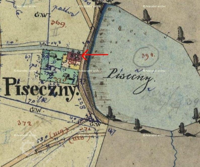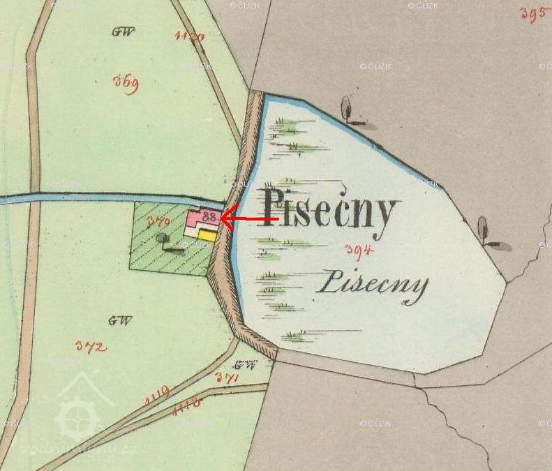 Prvním majitelem a zřejmě tím, kdo mlýn postavil, byl mlynář Dvoček. Jeho dcera Anna se provdala za mlynáře Františka Cabicara, jehož dědici po smrti 2. září 1828 byli vdova Anna, synové František a Vincenc a dcera Marie. V té době měl Písečný mlýn hodnotu 182 zlatých a 30,25 krejcaru. Každé z dětí dostalo třetinový podíl, tj. 60 zlatých a 50,25 krejcaru a Anna Cabicarová právo výměnku. Když se znovu provdala do mlýna v Bohdanči u Pardubic na panství Choltice, výměnku na Písečném mlýně se vzdala.