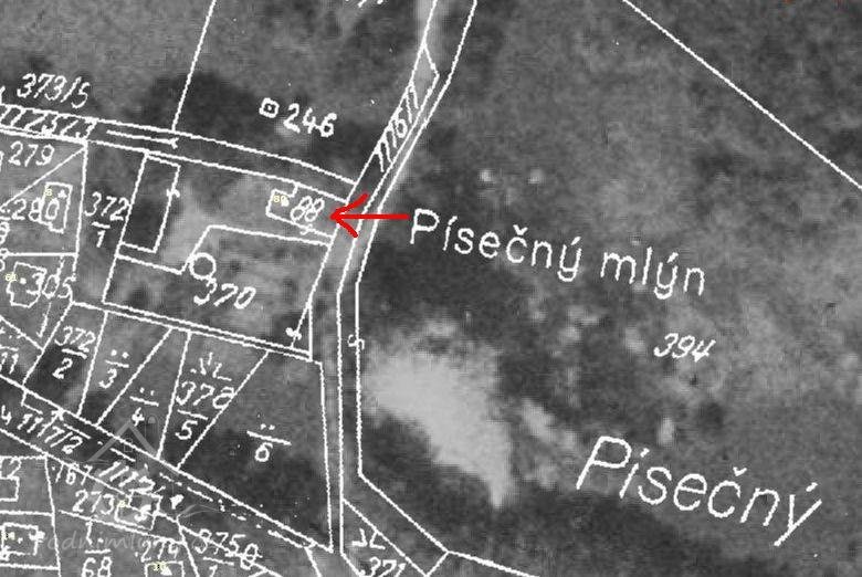 Mlýn zvaný Písečný vznikl na přelomu 18. a 19. století, neboť v registraci ovčárské rychty z let 1716–98 není o mlýnu žádná zmínka, až v tzv. knihách rustikálních smluv z let 1804–48 se uvádí dům s mlýnicí.