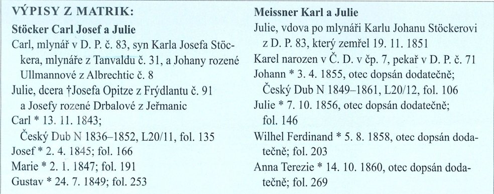 1851 - 1864 Julie Stöckerová (vdova po mlynáři Carlu Josefu Stöckerovi)