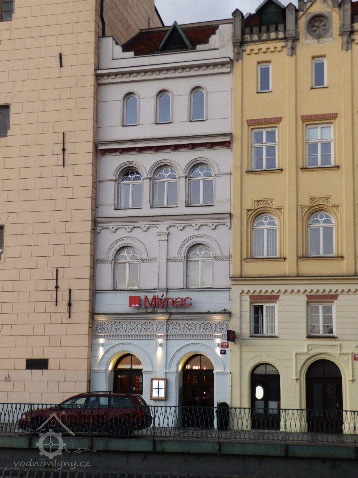 Původně mlýn postavený na kůlech, zaražených do dna Vltavy, doložený k roku 1640. 1806 rozdělen na dvě části, odděleno čp. 976. 1848 a 1878 vyhořel, 1934 ukončeno mletí a adaptován na byty. Dnes součást areálu ČSVTS, průčelí ke Karlovu mostu opticky sloučeno se sousedním mlýnem Bouda (čp. 202).