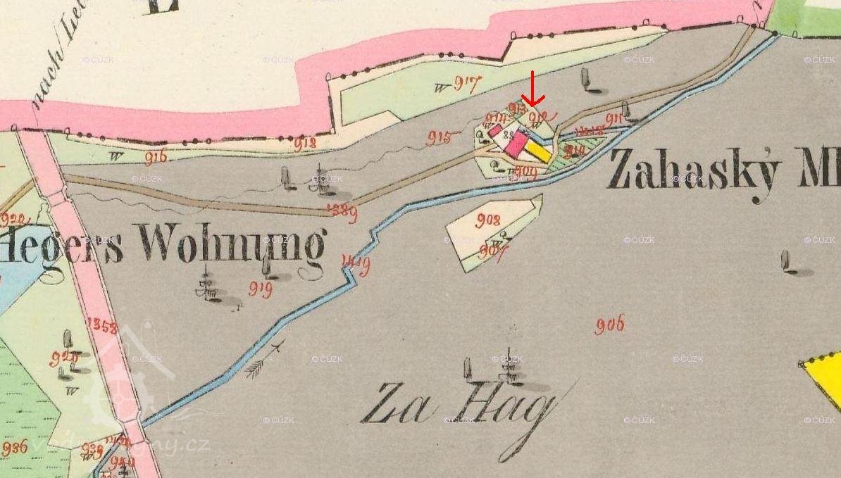 Popis1930: 1 kolo na svrchní vodu, hltnost 0,036 m3/s, spád 8 m, výkon 2,5 HP