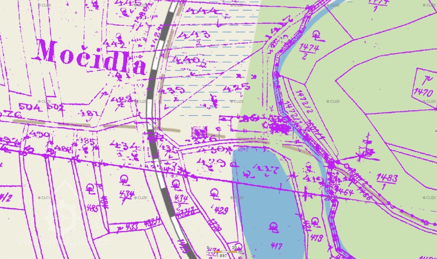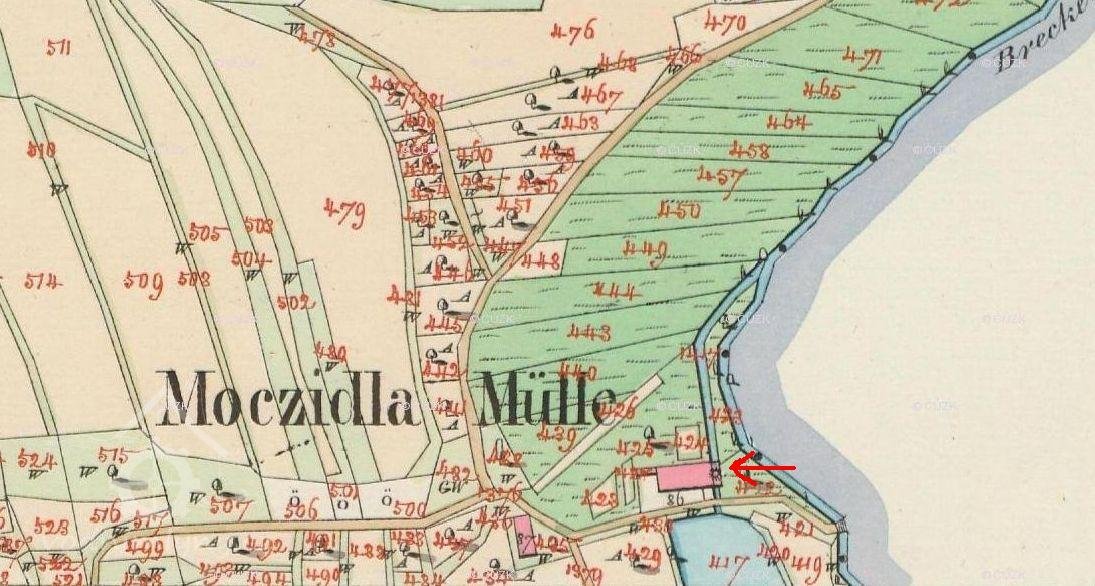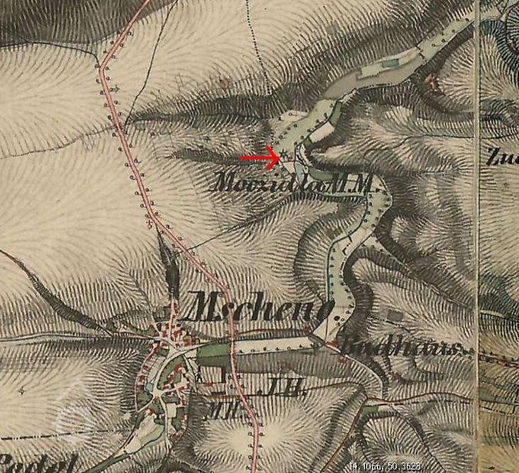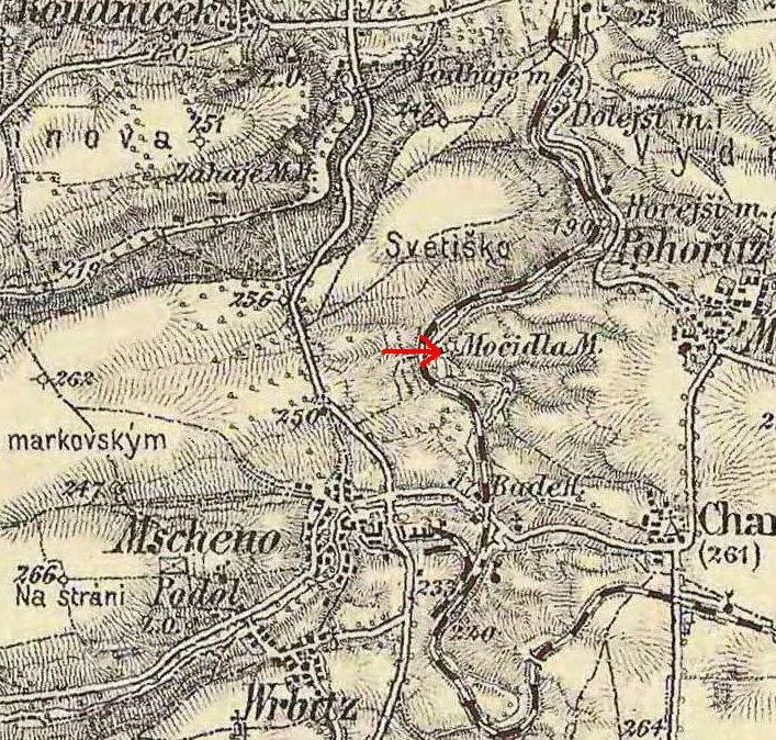 Značka mlýna v Močidlech je uvedena ještě na III. vojenském mapování v letech 1877-80.