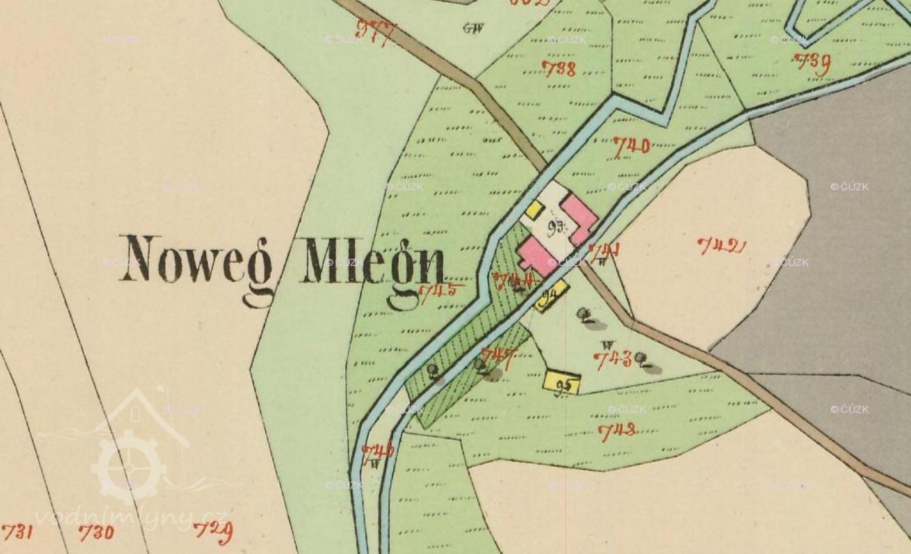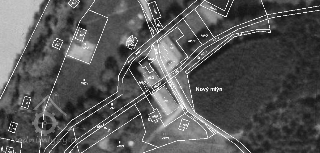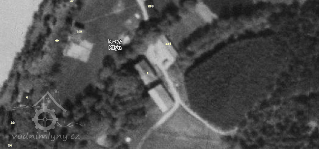 Mlýn, založený patrně koncem 18. století, od roku 1917 v držení rodu Jupů, v provozu do roku 1940 (pila do 1950). V roce 1962 zde zřízen dětský pionýrský tábor. Po roce 1989 restituován rodině Jupových, následně odprodán akciové společnosti Nový mlýn, která jej 2002 nechala zbořit a začala zde stavět luxusní penzion ve stylu podnikatelského baroka, dokončen však byl pouze obytný dům, zbytek v roce 2003 zakonzervován ve stadiu hrubé stavby.