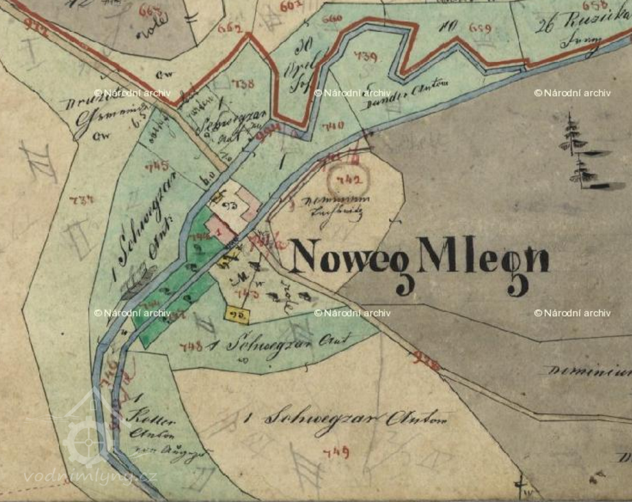1858 František Štiller koupil v exekuční dražbě Švejcarův mlýn čp. 43 v Družci, Nový mlýn prodal za 11.000 zlatých Josefu Pánkovi ze Žiliny