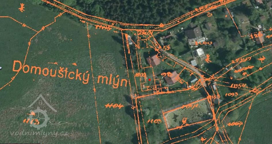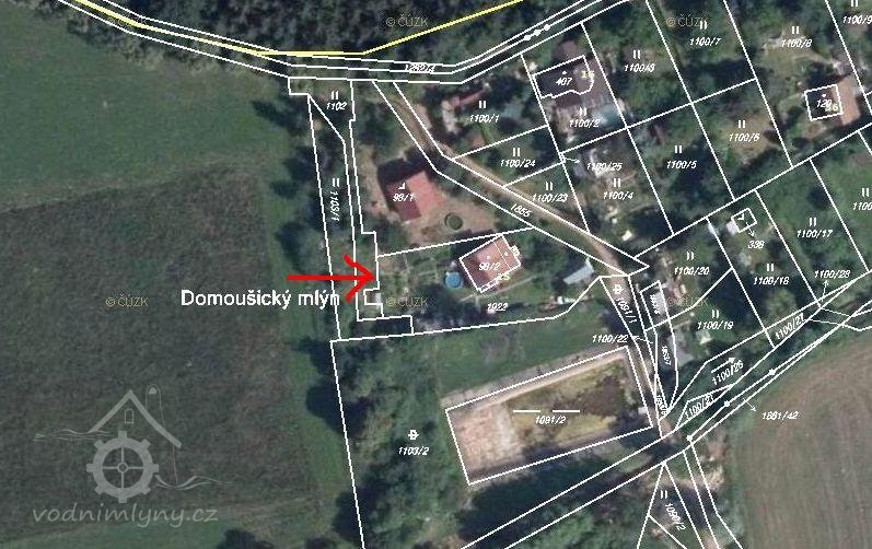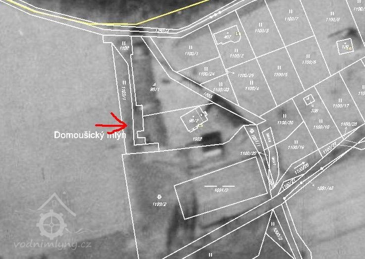 Vodní mlýn v Domoušicích měl čp. 47. První zprávu o něm zachycujeme v 18. století, kdy se na mlýně v letech 1761-62 uvádí mlynář Antonín Rollinger  se svou manželkou Evou. V letech 1765-67 zde mlynařil Jak Prokš. Dalšími doloženými mlynáři ještě v 18. stol. zde byli Vojtěch Hoffman, Jan Neudörfel a Daniel Böhm.